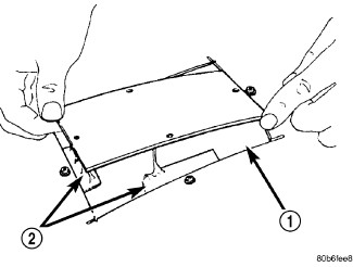 12. Position patch in cutout (1) against support squares (2) and adjust patch until the gap is equal along all sides.