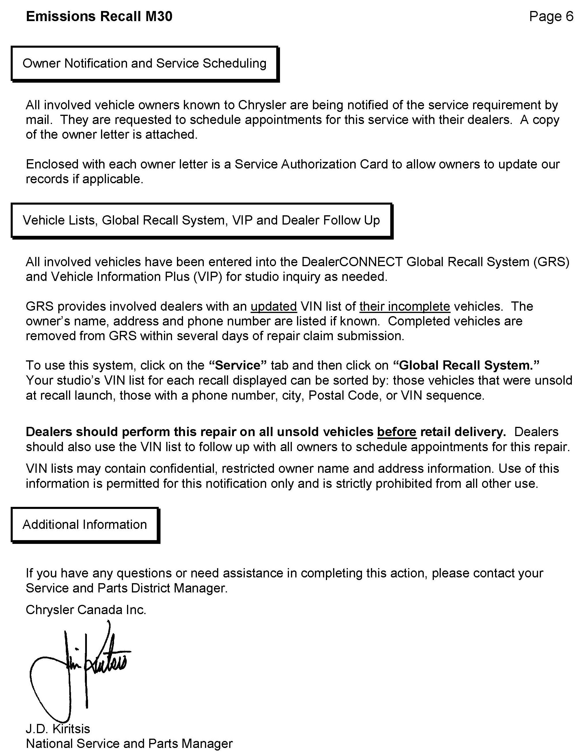 Dealer Service Instructions