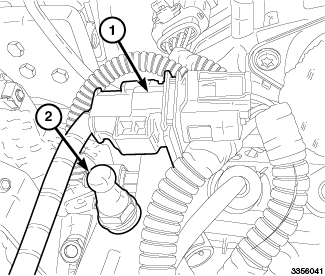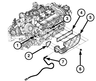 5. Disconnect the oxygen sensor wire harness connector (1).