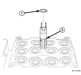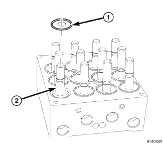 2. If the seals (1) on the solenoid valve stems (2) are not new, replace them all. Each of the solenoid valve stem seals must be new to keep out moisture and debris; do not reuse solenoid valve stem seals.