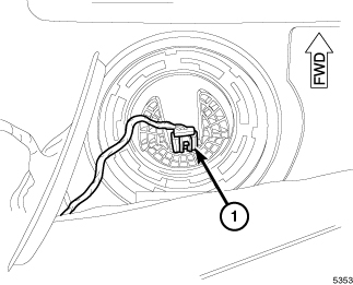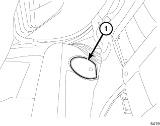 2. Remove the auxiliary fuel pump module plastic access cover (1) from the floor pan.
