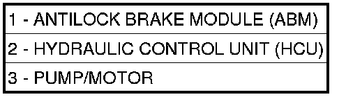 The Antilock Brake Module (ABM) is a microprocessor-based device which monitors the antilock brake system (ABS) during normal braking and controls it when the vehicle is in an ABS stop or when in a traction control or Electronic Stability Control (ESC) situation. The ABM utilizes a 47-way electrical connector on the vehicle wiring harness. The power source for the ABM is through the ignition switch in the RUN or ON position.