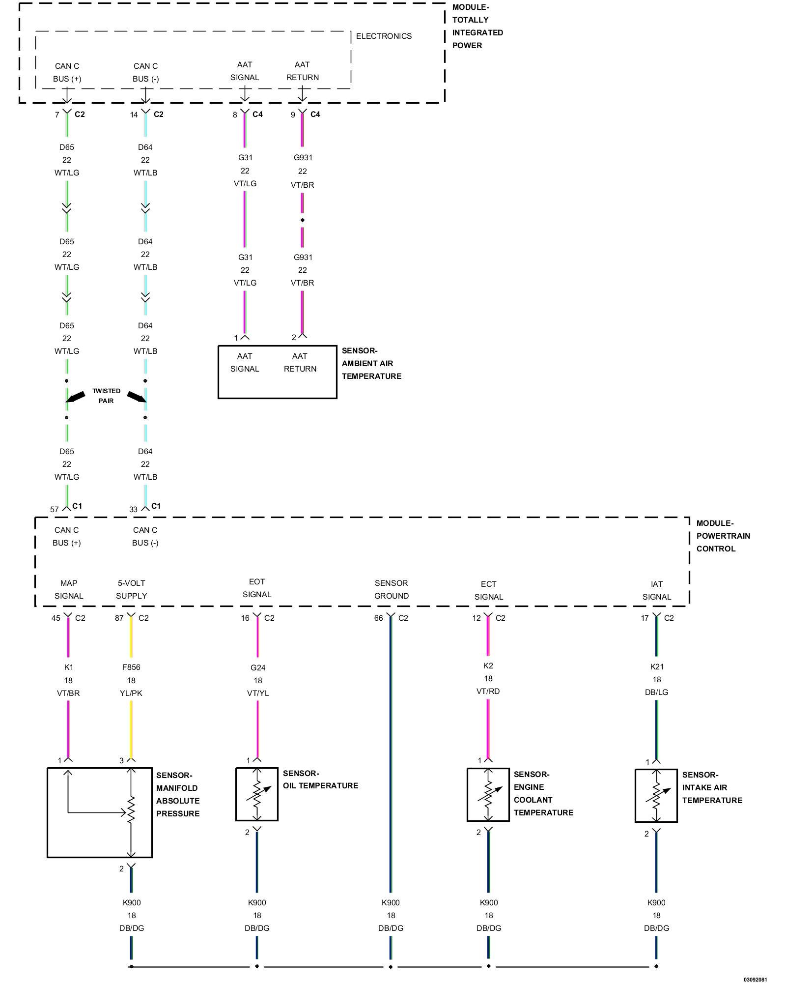 1. Using the wiring diagram/schematic as a guide, inspect the wiring and connectors between the Engine Coolant Temperature Sensor and the Powertrain Control Module (PCM).