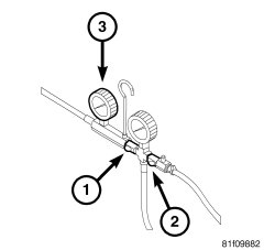 3. Read the Fuel Pressure Gauge (3) and record the reading. The fuel pressure specification is 407 kPa +/- 34 kPa (59 psi +/- 5 psi).