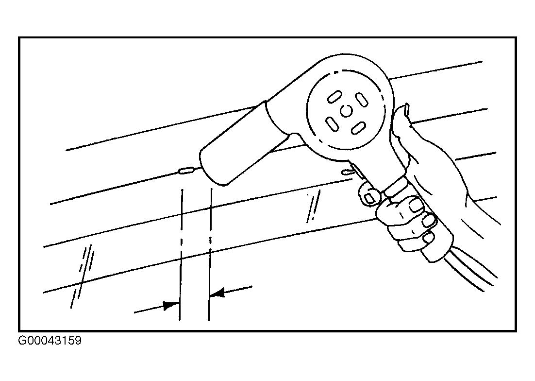 - Heat repair area for 1 to 2 minutes. Hold heat gun nozzle 25 mm (1") from surface. A minimum temperature of 149°C (300°F) is required. Heat repair area for 1 to 2 minutes. Hold heat gun nozzle 25 mm (1") from surface. A minimum temperature of 149°C (300°F) is required. Heat repair area for 1 to 2 minutes. Hold heat gun nozzle 25 mm (1") from surface. A minimum temperature of 149° C (300°F) is required.