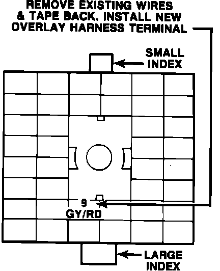 Install the yellow wire just removed from bulkhead connector into the loose natural colored 1-way connector supplied in the instrument panel overlay harness, PN 4368642.