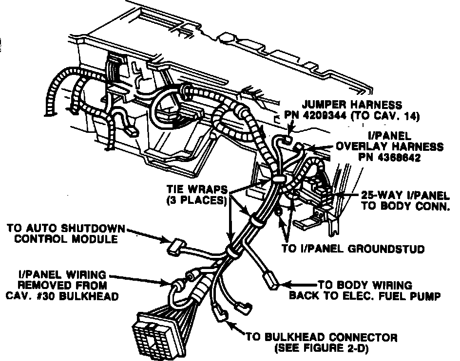 4. Insert two bare terminals on instrument panel overlay harness, PN 4368642, into the instrument panel side of the bulkhead connector (Figure 2-D).