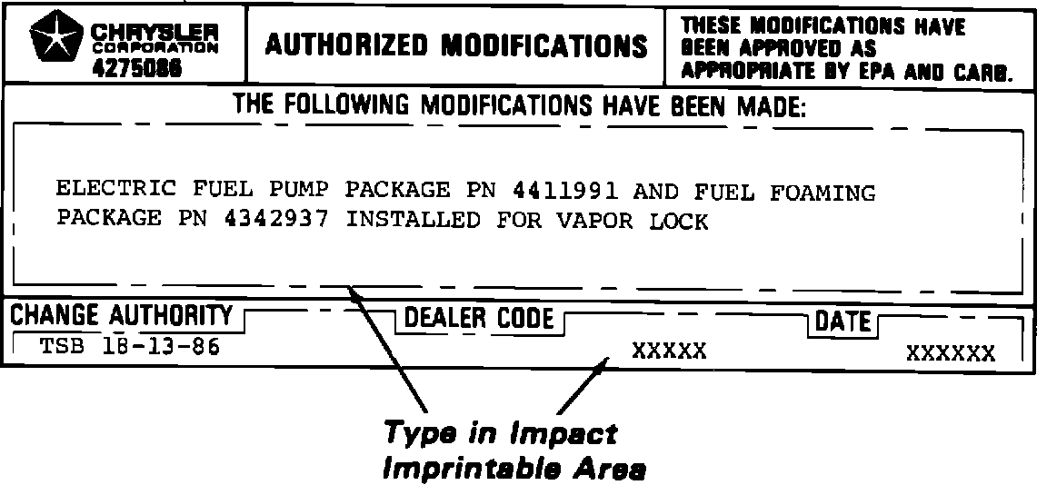 Home >> Dodge and Ram >> 1982 >> 400 L4-156 2.6L >> Repair and Diagnosis >> Powertrain Management >> Computers and Control Systems >> Relays and Modules - Computers and Control Systems >> Engine Control Module >> Technical Service Bulletins >> Customer Interest >> Fuel System - Vapor Lock >> Repair Procedure