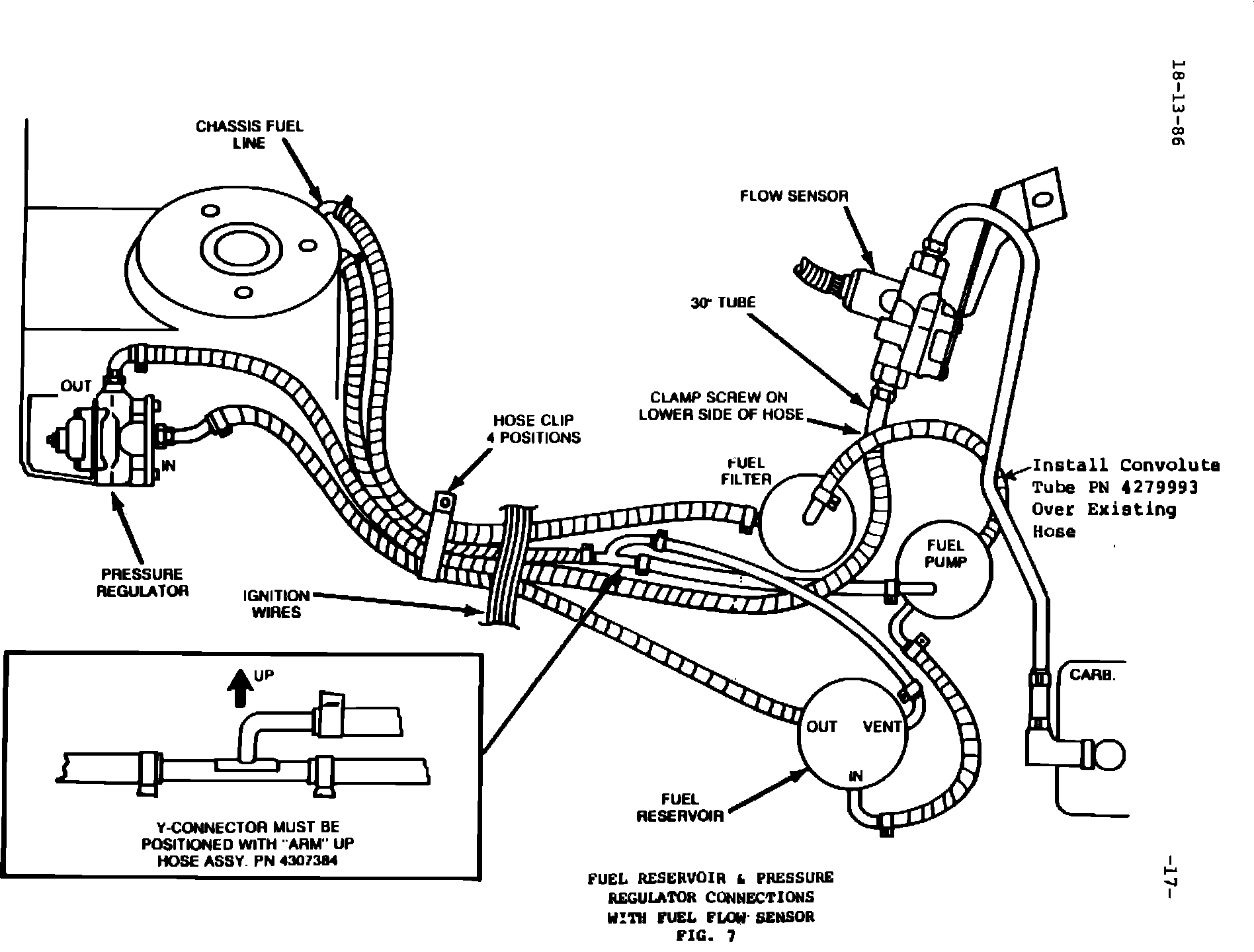 FIGURE 7 - FUEL RESERVOIR & PRESSURE REGULATOR CONNECTIONS WITH FUEL FLOW SENSOR: