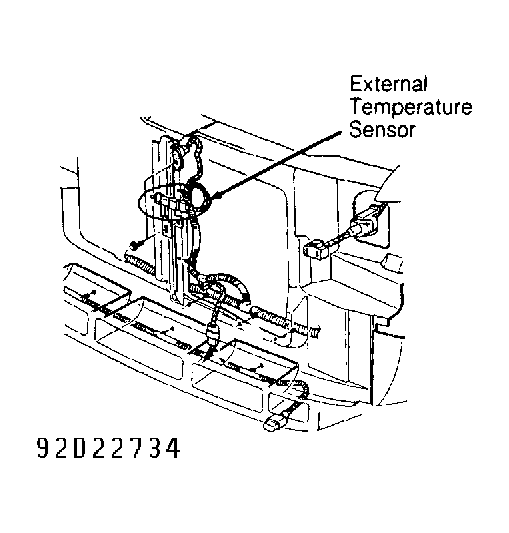 5. If compass/mini-trip screen displays "OC" in step 1), turn ignition switch to OFF position. Disconnect external temperature sensor. Check connector, and clean or repair connector as necessary. Connect a jumper wire between external temperature sensor connector terminals. Turn ignition switch to ON position.