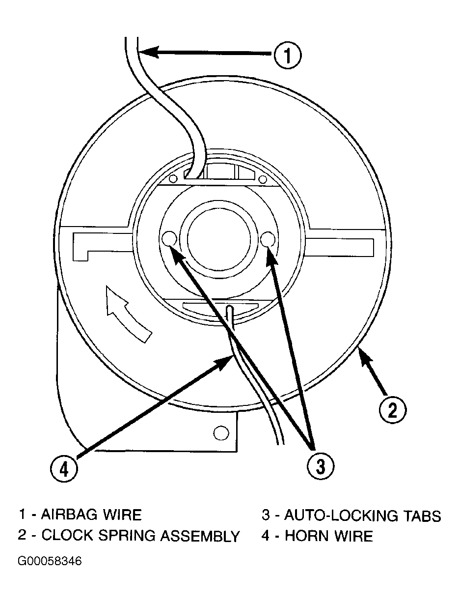 - Remove driver airbag. Remove steering wheel with a Steering Wheel Puller (ST C-3428B). Depress two plastic clock spring auto-locking tabs. See Fig 1 . Keeping locking mechanism disengaged, rotate clock spring rotor clockwise to end of its travel. DO NOT apply excessive force.