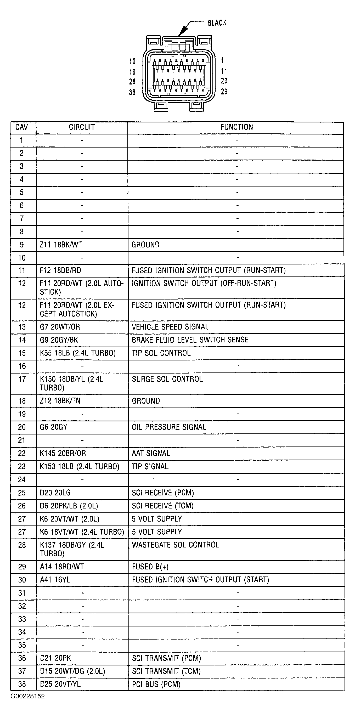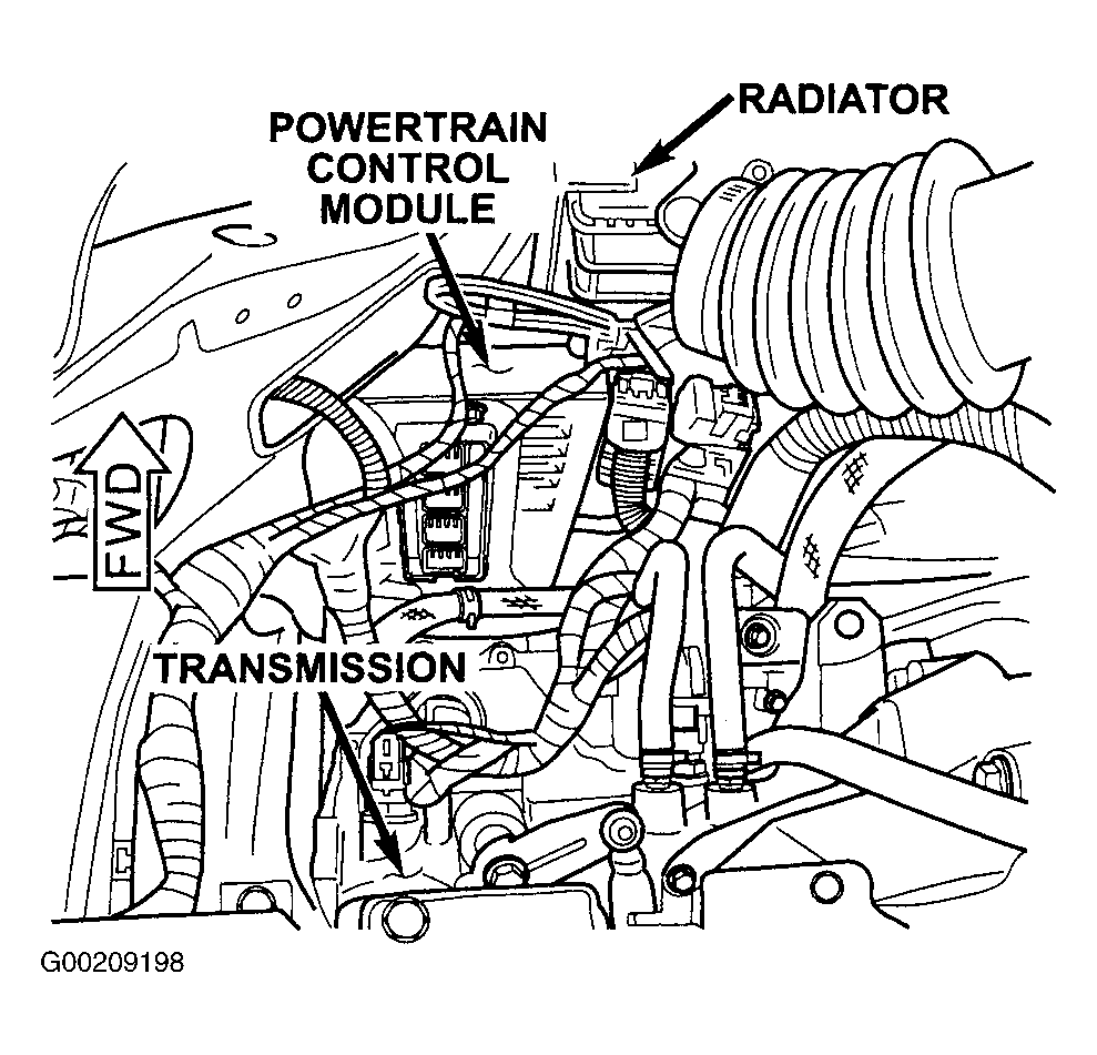 - Turn ignition off. Disconnect PCM harness connectors. See Fig 1. Connect a test light between ground and fused battery voltage circuit at PCM C1 harness connector terminal. See Fig 2 or Fig 3 . If test light illuminates brightly, go to next step. If test light does not illuminate brightly, repair open in fused battery voltage circuit.