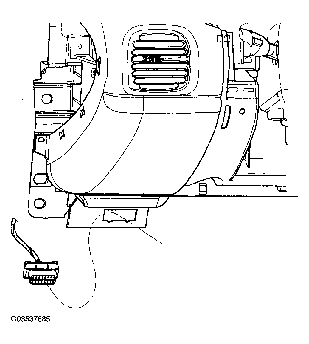 The data link connector is located inside the vehicle, under the instrument panel, left of the steering column (Fig 1).