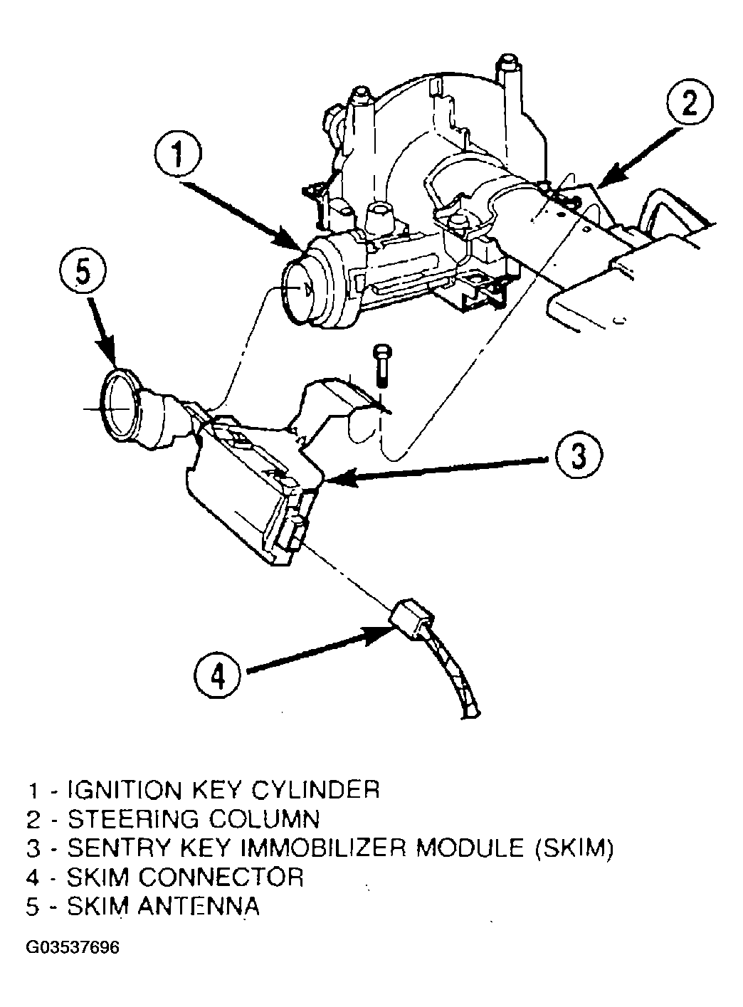 - Engage the steering column wire harness to the Sentry Key Immobilizer Module (SKIM) (Figure).