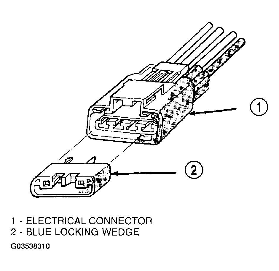 - Depress retaining tab and remove the fuel pump/level sensor connector from the bottom of the fuel pump module electrical connector (Fig 1).