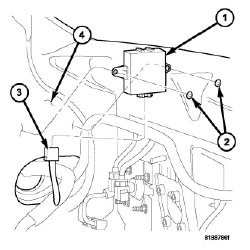 Move into place, install bolts (2) and tighten to 11 Nm (97 in. lbs.).