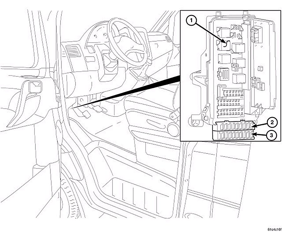 is located beneath the driver side end of the instrument panel in the passenger compartment.