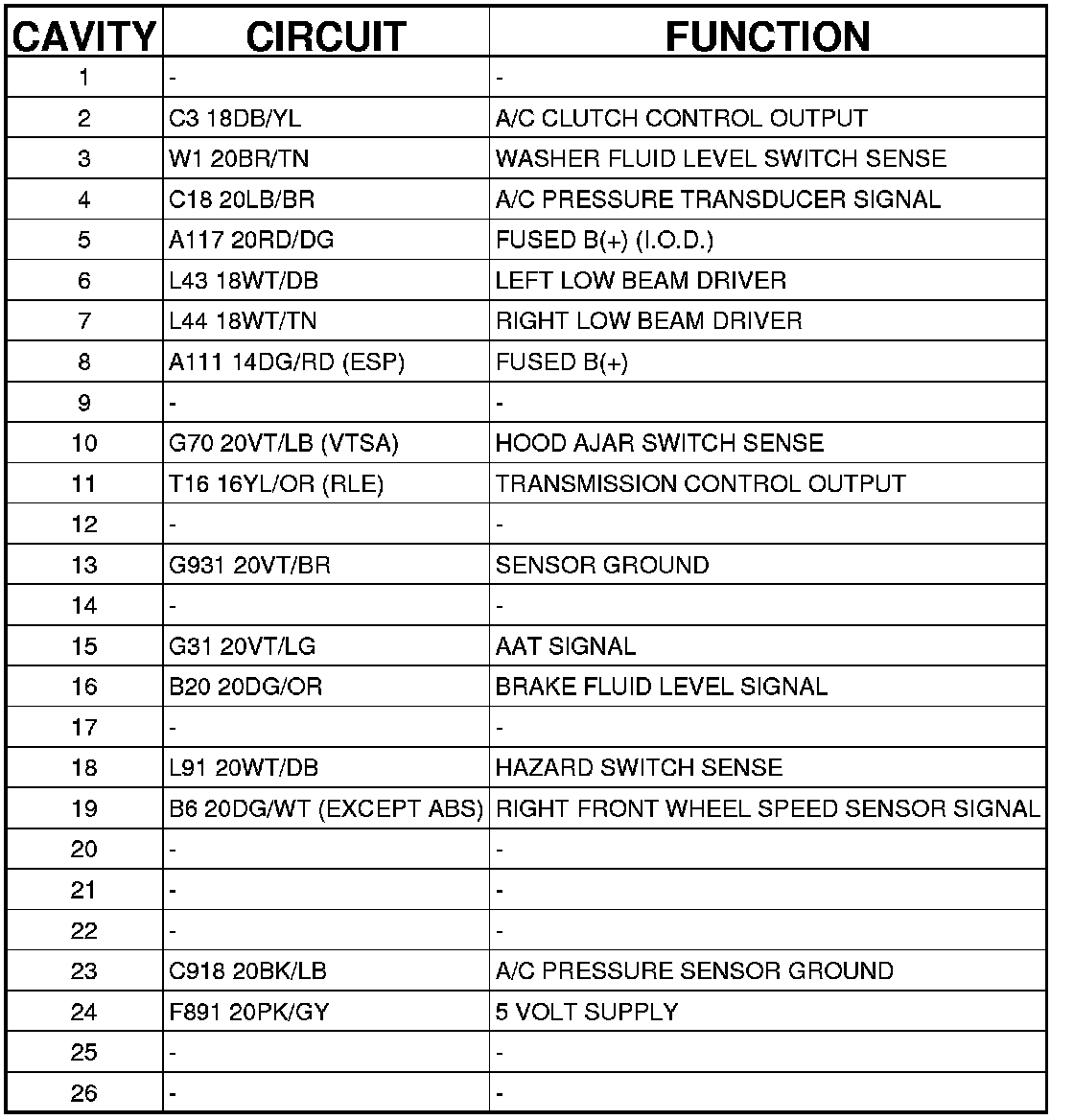 Connector C2 - (HEADLAMP AND DASH) 26 WAY
