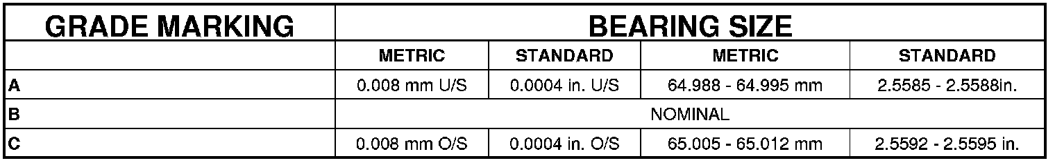 Main Bearing Journal Diameter 64.988 - 65.012 mm (2.5585 - 2.5595 in.)