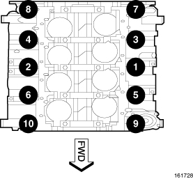 Using the sequence shown, rotate the cylinder head bolts 1 through 10 90°.