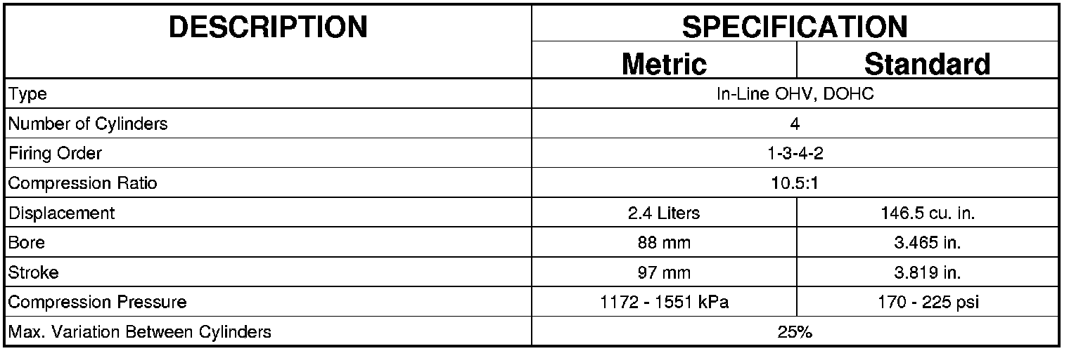 Home >> Dodge and Ram >> 2011 >> Caliber L4-2.4L >> Repair and Diagnosis >> Specifications >> Mechanical Specifications >> Engine >> System Specifications >> Engine Specifications