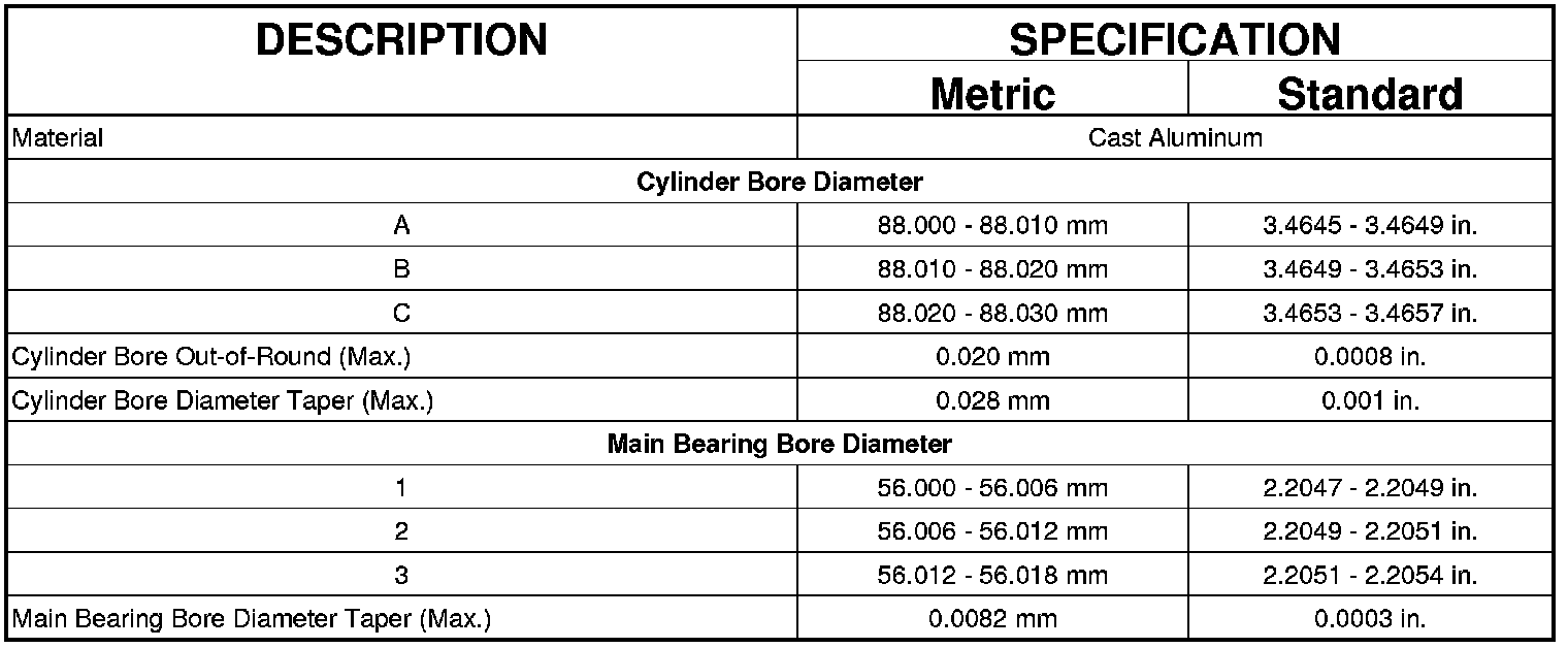 CYLINDER HEAD CAMSHAFT BEARING BORE DIAMETER