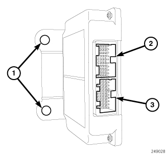 1. Install TCM mounting bracket holes (1) over the two studs on the bulkhead.