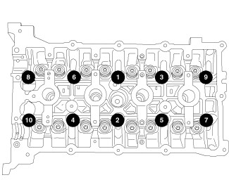 The cylinder head bolts are tightened using a torque plus angle procedure.The bolts must be examined BEFORE reuse. If the threads are necked down the bolts must be replaced.