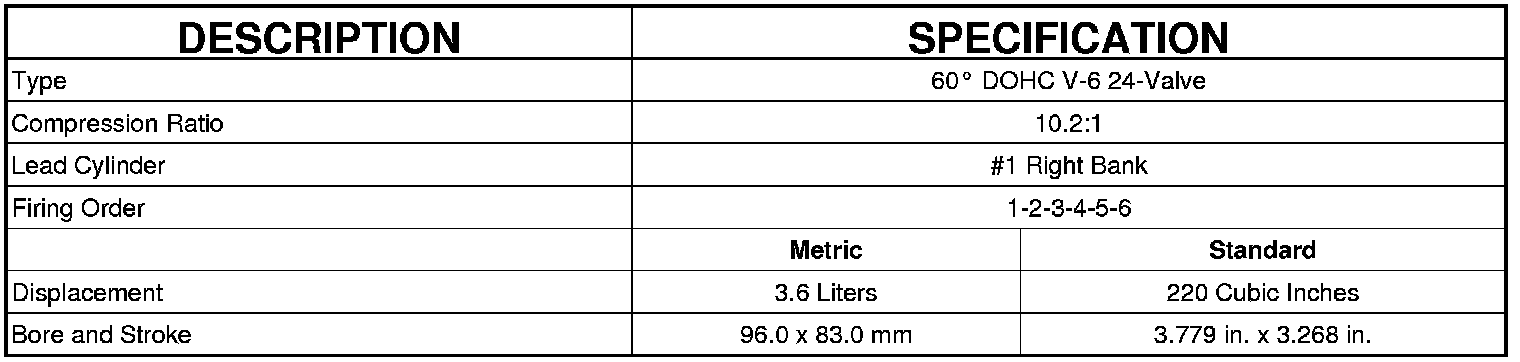 Home >> Dodge and Ram >> 2012 >> Durango 2WD V6-3.6L >> Repair and Diagnosis >> Specifications >> Mechanical Specifications >> Engine >> System Specifications >> Engine Specifications