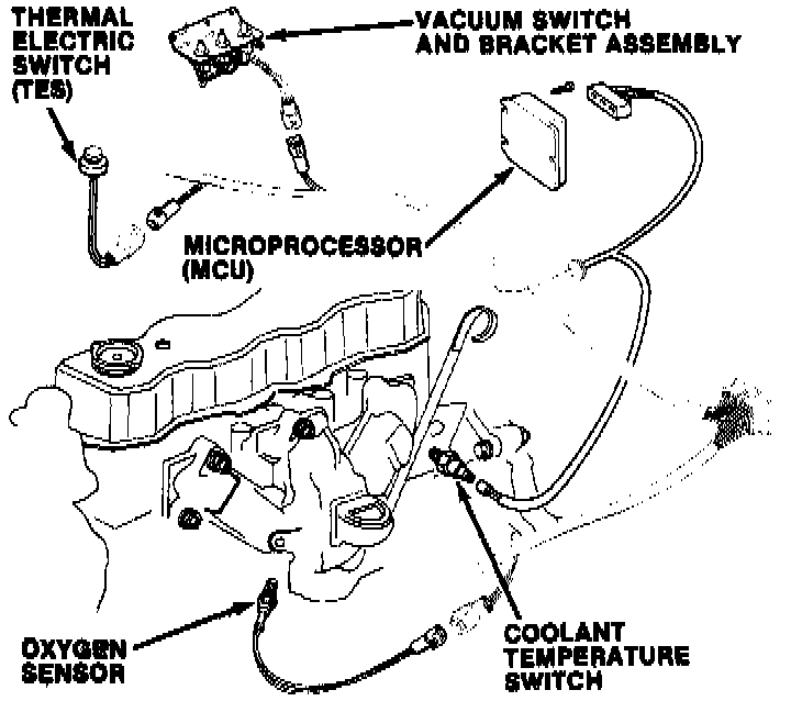 This unit is a microprocessor that monitors the oxygen sensor voltage and, based upon the mode of operation, generates an output control signal for the carburetor stepper motor.