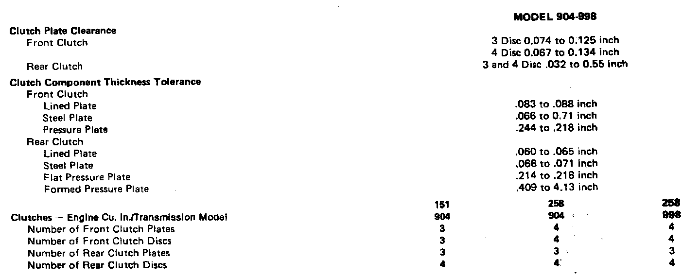 SpecificationsType *904, and 998 Automatic Transmissions.
