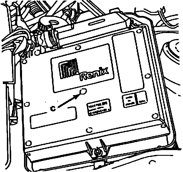 When an ECU is removed from a vehicle that has been placed in service, indicate this by placing a daub of red paint (C) on the ECU as shown in Figure (3) before returning the part to C.R.E.G.