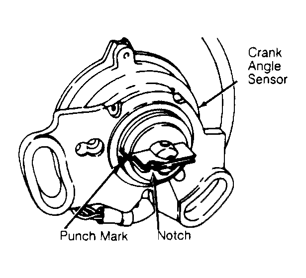 - Turn crankshaft so that No. 1 cylinder is at TDC. Align punch mark on crank angle sensor housing with notch in plate. See Fig 1