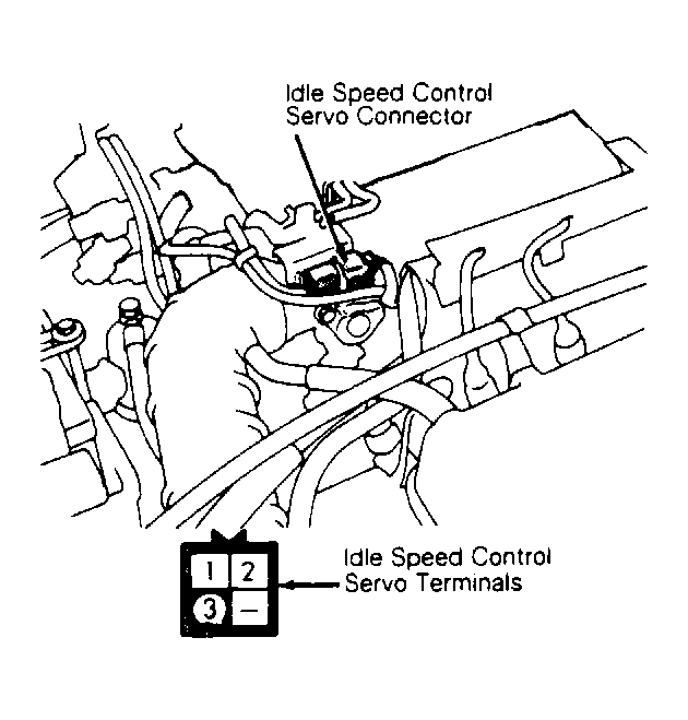 - Idle speed control servo is located on throttle body. Disconnect idle speed control servo connector. Check continuity of idle speed control servo coil.