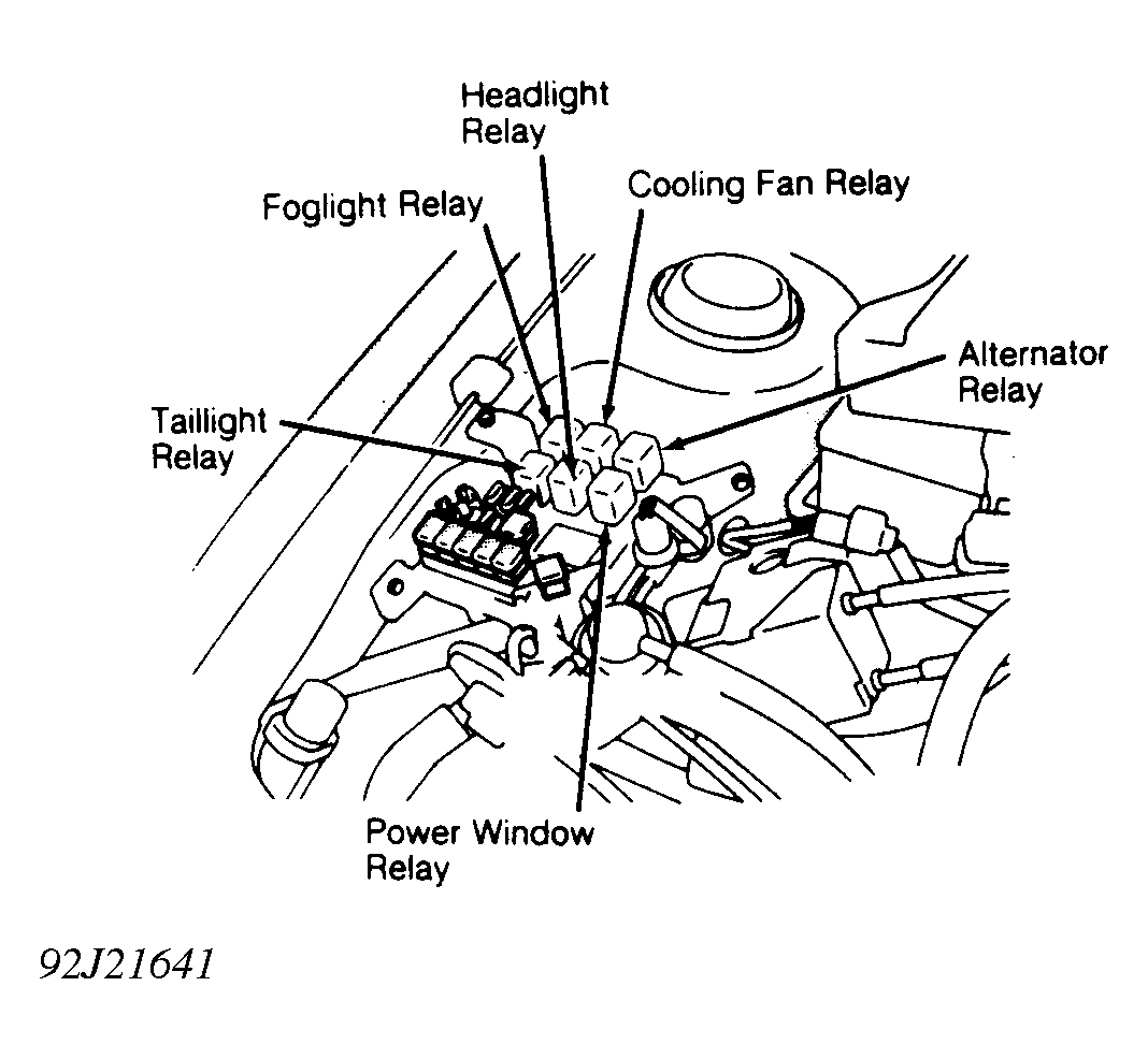 On relay block, in engine bay. |