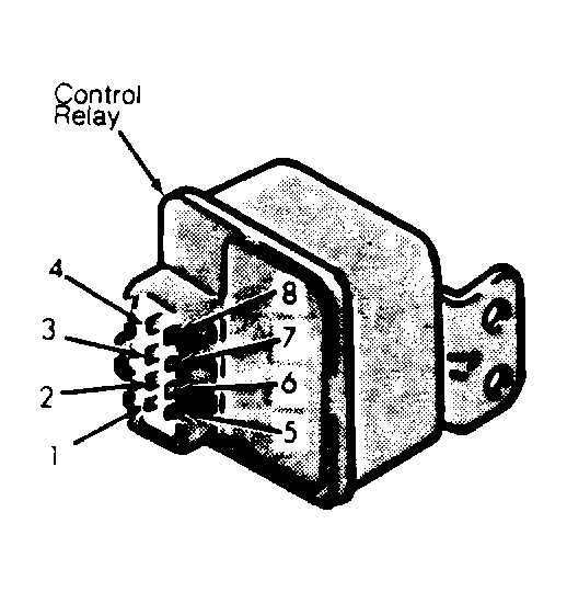 - Connect positive lead to terminal No. 8 and negative lead to terminal No. 6. Using an ohmmeter, check for continuity between terminals No. 2 and 4. If continuity exists, go to next step. If continuity does not exist, replace relay.
