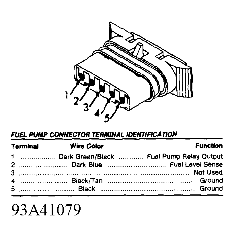 FUEL PUMP CONNECTOR TERMINAL IDENTIFICATION