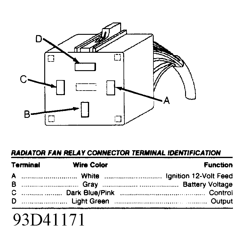 RADIATOR FAN RELAY CONNECTOR TERMINAL IDENTIFICATION (3.3L)