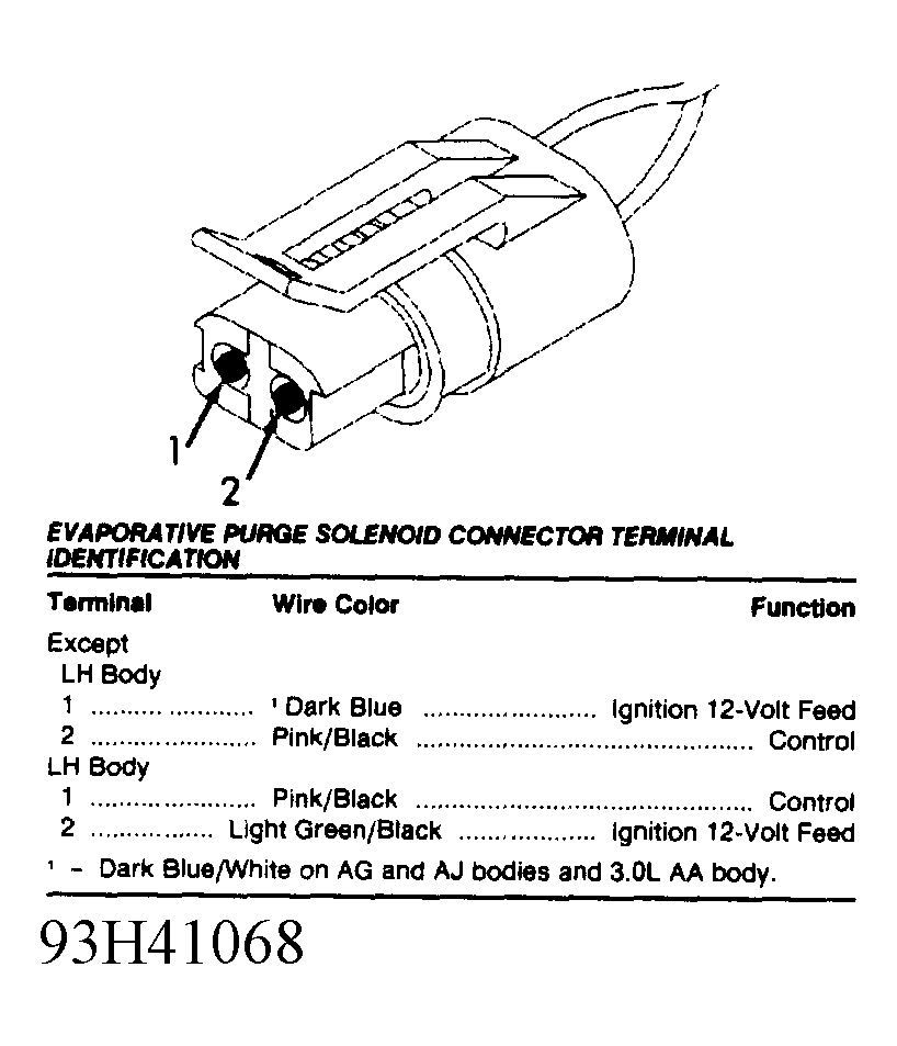EVAPORATIVE PURGE SOLENOID CONNECTOR TERMINAL ID