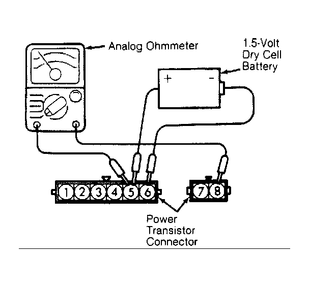 - Check for continuity with dry cell battery connected and disconnected. Continuity should exist with battery connected. No continuity should exist with battery disconnected. If power transistor does not test as specified, replace power transistor.