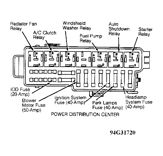 - Disconnect washer relay, located in power distribution center in front of left strut tower. See Figure . Measure voltage at washer relay connector terminals "A" and "B" (Dark Blue wires). If voltage is less than 10 volts at each circuit, repair open Dark Blue wires. If voltage is more than 10 volts at each circuit, go to next step.