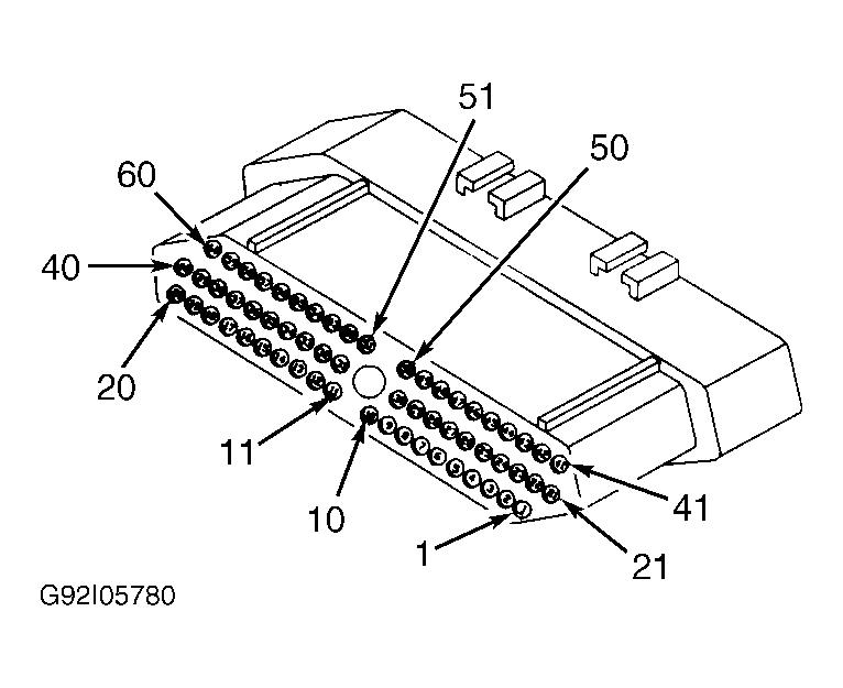 . Connector terminal numbers are molded into connectors. If connector terminal identification differs from that shown in figure, use wire colors to ensure correct circuit is being tested. For wiring diagrams, see WIRING DIAGRAMS.