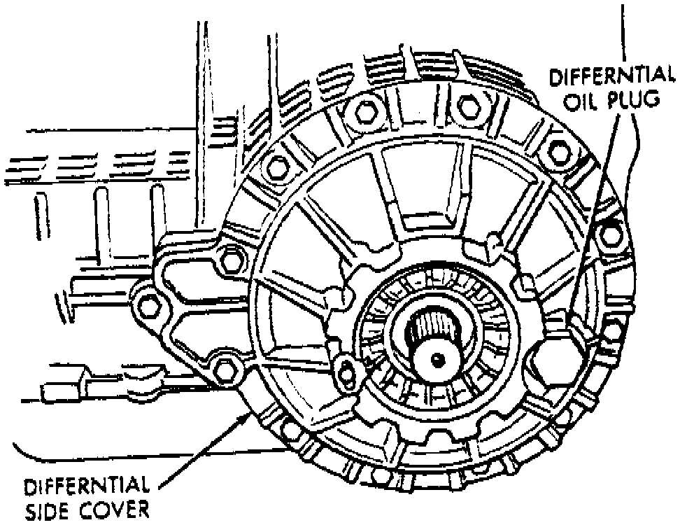 The differential sump is checked separately from the transaxle. A fill plug located on the side of the transaxle must be removed to check fluid level, Fig.6. Fluid should be level with bottom of the fill hole. If necessary, add MOPAR petroleum based hypoid gear lubricant 80W-90 to bring level to bottom of fill hole. Synthetic gear lubricants should not be used.