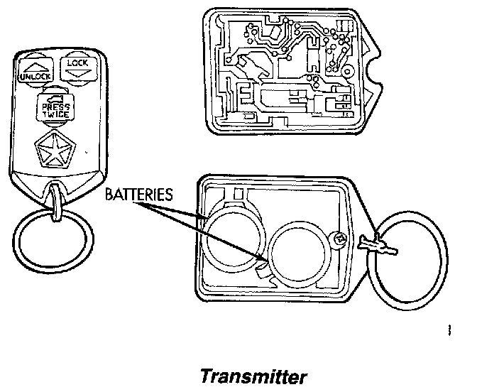 Home >> Eagle >> 1995 >> Vision V6-201 3.3L >> Repair and Diagnosis >> Body and Frame >> Locks >> Keyless Entry >> Keyless Entry Transmitter >> Service and Repair >> Battery Replacement