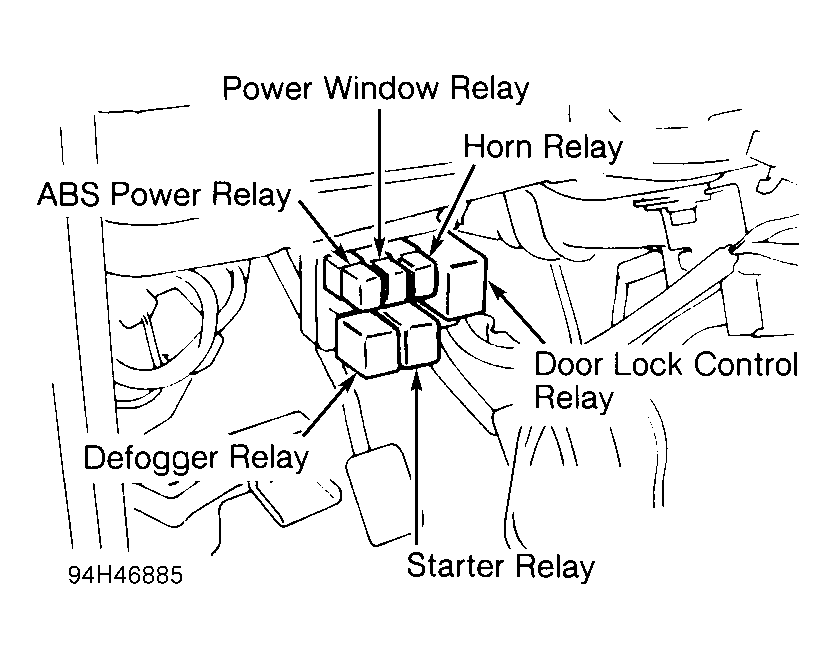 - Remove power window relay from fuse/relay block located in engine compartment. See Fig 1