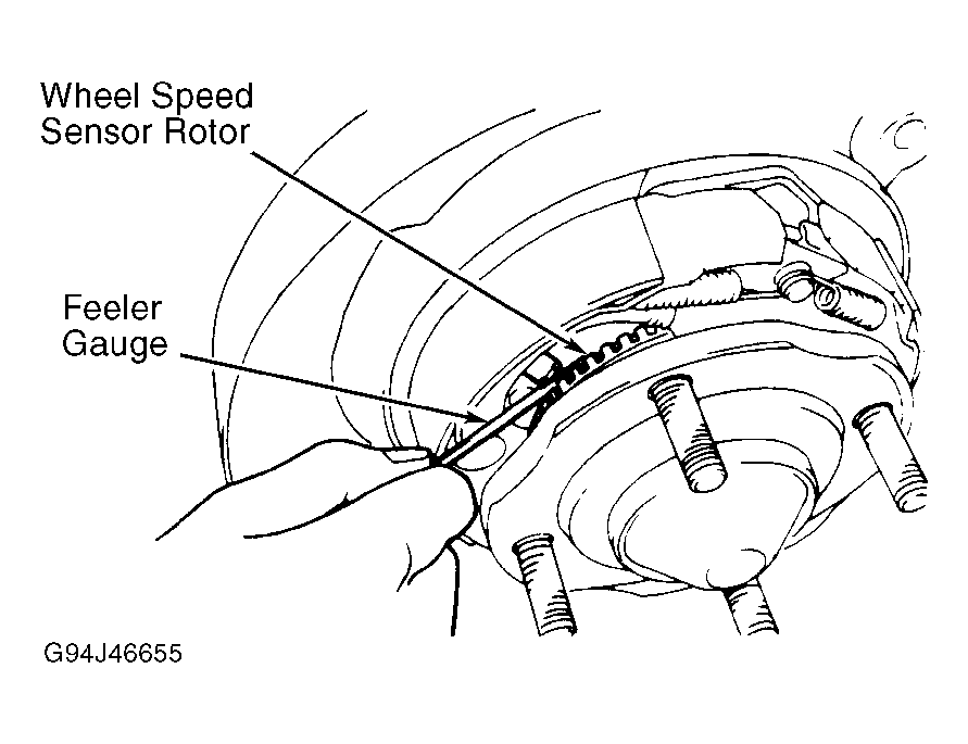 - Raise and support vehicle. Remove tire and wheel assembly. Inspect sensor pole piece for damage. Repair if necessary. If sensor pole piece is okay, check wheel speed sensor-to-rotor gap.