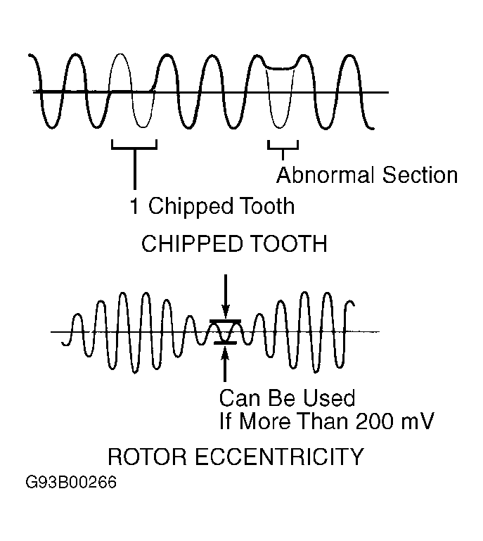 - Inspect all wheel speed sensor rotors for damaged and missing teeth. Replace any damaged rotors. Using an oscilloscope, check waveform patterns. See Fig 1. If all rotors are okay, replace ECU and road test vehicle. Ensure DTC does not reset.