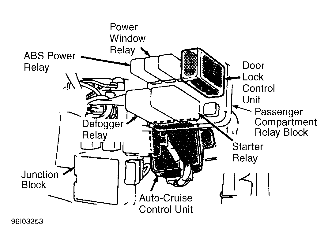 | Passenger Compartment Relay Block | Behind left side of dash. See Figure . |