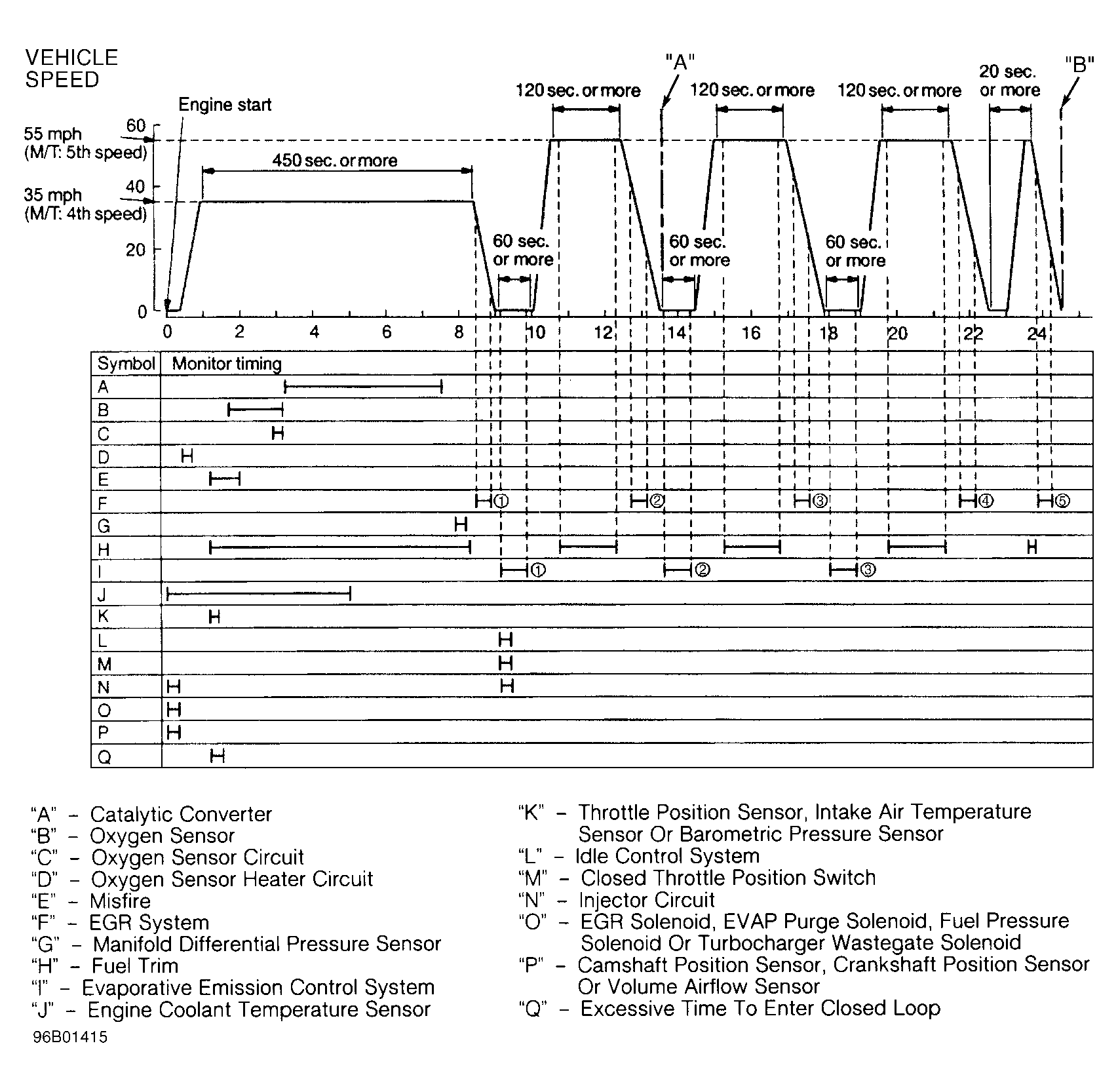 - Vehicle drive pattern is performed with vehicle at specified speed, transaxle in proper gear and for a specified amount of time for the system or component that is being monitored. See Fig 1