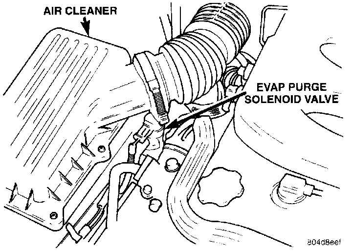 The duty cycle EVAP purge solenoid regulates the rate of vapor flow from the EVAP canister to the throttle body. The powertrain control module operates the solenoid.